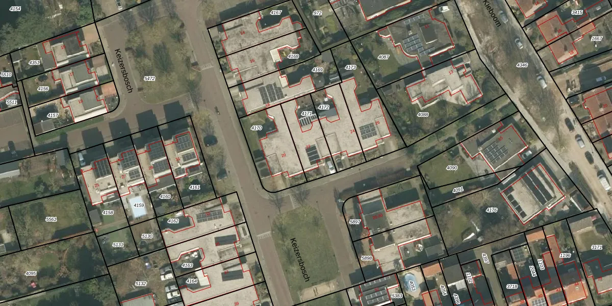 Het perceel waarop Keizersbosch 22 staat heeft een oppervlakte van 278 m². Dit is een middelgroot perceel. De perceeloppervlakte wordt geregistreerd door het Kadaster. Gedetailleerde informatie over de maten van dit perceel kunt u vinden in het rapport Kadastrale kaart met maatvoering van Keizersbosch 22.