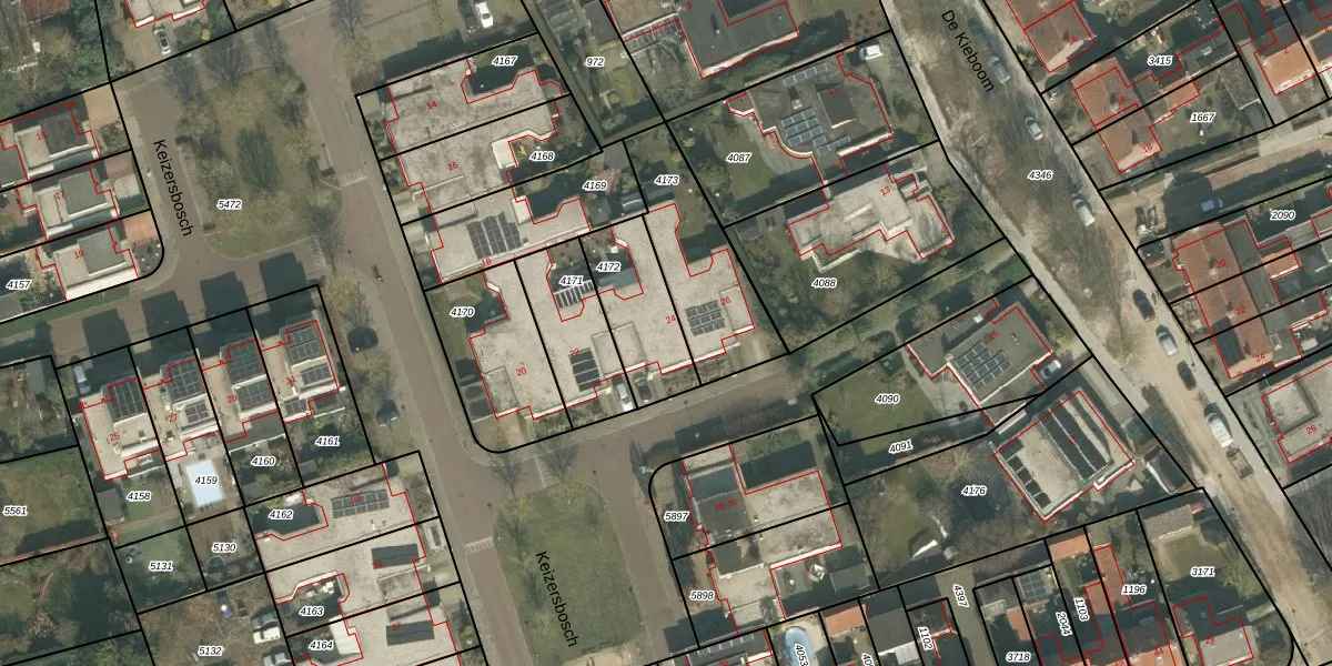Het perceel waarop Keizersbosch 24 staat heeft een oppervlakte van 278 m². Dit is een middelgroot perceel. De perceeloppervlakte wordt geregistreerd door het Kadaster. Gedetailleerde informatie over de maten van dit perceel kunt u vinden in het rapport Kadastrale kaart met maatvoering van Keizersbosch 24.