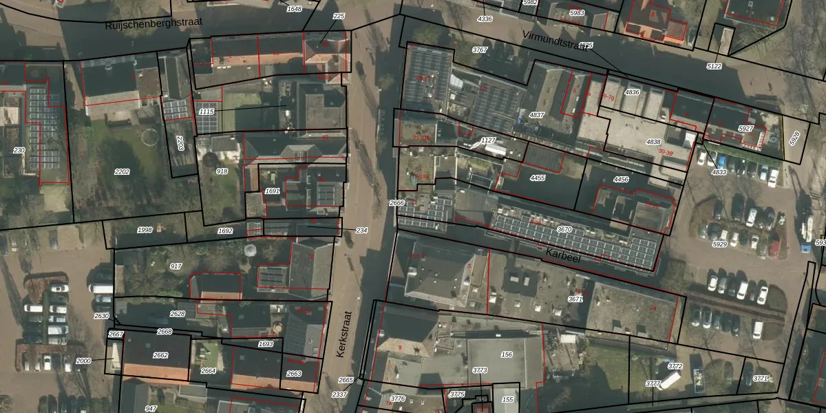 Het perceel waarop Kerkstraat 17 staat heeft een oppervlakte van 590 m². Dit is een groot perceel. De perceeloppervlakte wordt geregistreerd door het Kadaster. Gedetailleerde informatie over de maten van dit perceel kunt u vinden in het rapport Kadastrale kaart met maatvoering van Kerkstraat 17.