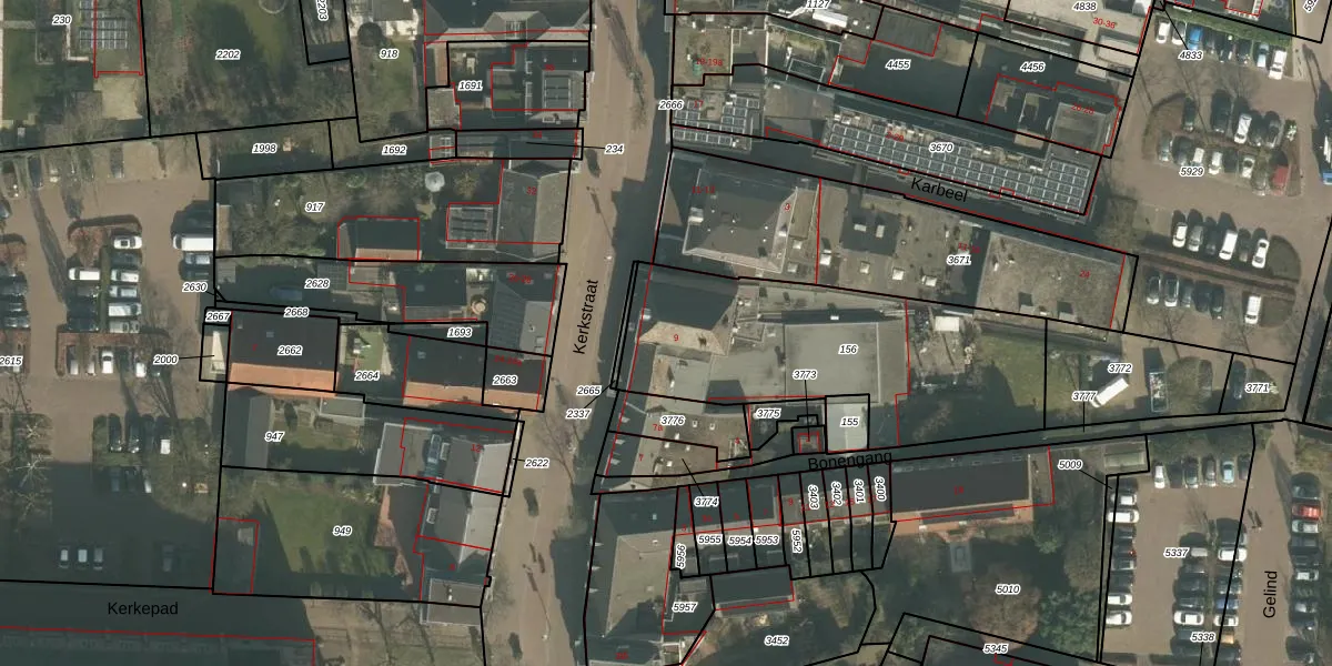 Kerkstraat 9 is gelegen op kadastraal perceel GMT00M156. Deze kadastrale aanduiding is uniek en wordt gebruikt door het Kadaster om eigendomsrechten en andere zakelijke rechten vast te leggen. Het perceel maakt onderdeel uit van de kadastrale gemeente Gemert.