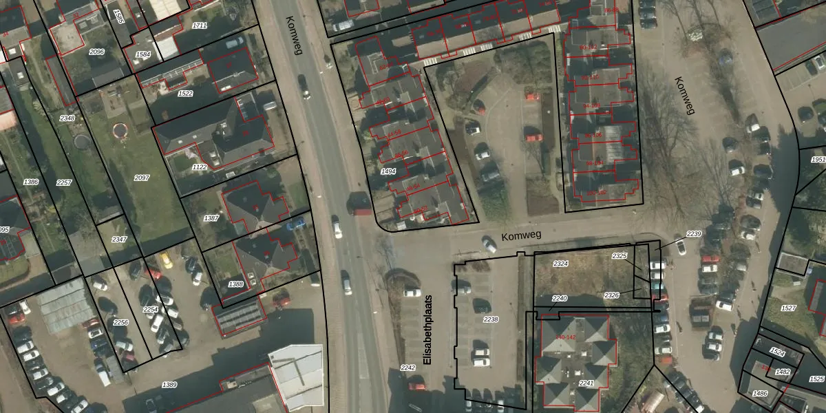 Het perceel waarop Komweg 50 staat heeft een oppervlakte van 2494 m². Dit is een zeer groot perceel. De perceeloppervlakte wordt geregistreerd door het Kadaster. Gedetailleerde informatie over de maten van dit perceel kunt u vinden in het rapport Kadastrale kaart met maatvoering van Komweg 50.