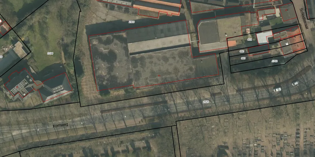 Het perceel waarop Komweg 81 staat heeft een oppervlakte van 1,3 ha. Dit is een zeer groot perceel. De perceeloppervlakte wordt geregistreerd door het Kadaster. Gedetailleerde informatie over de maten van dit perceel kunt u vinden in het rapport Kadastrale kaart met maatvoering van Komweg 81.