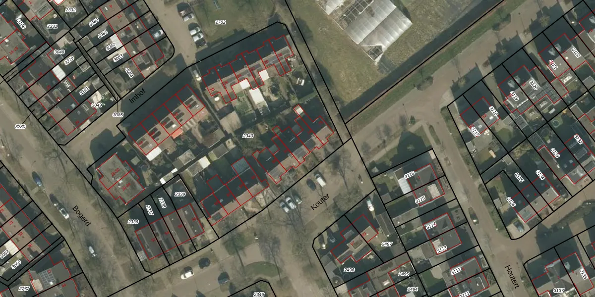 Het perceel waarop Kouter 72 staat heeft een oppervlakte van 3363 m². Dit is een zeer groot perceel. De perceeloppervlakte wordt geregistreerd door het Kadaster. Gedetailleerde informatie over de maten van dit perceel kunt u vinden in het rapport Kadastrale kaart met maatvoering van Kouter 72.