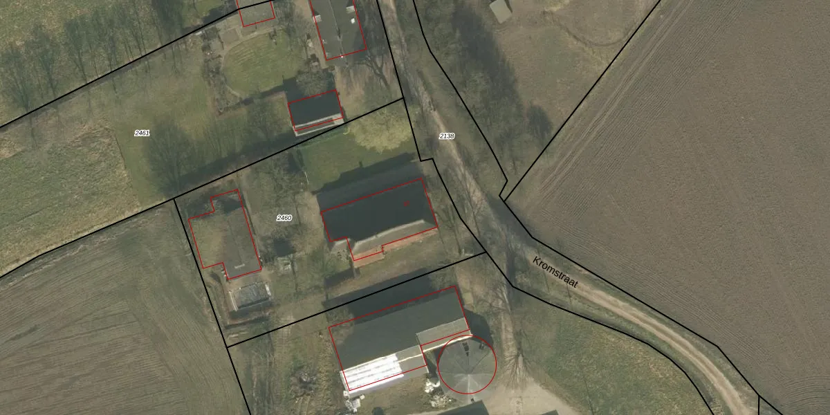 Het perceel waarop Kromstraat 37 staat heeft een oppervlakte van 2480 m². Dit is een zeer groot perceel. De perceeloppervlakte wordt geregistreerd door het Kadaster. Gedetailleerde informatie over de maten van dit perceel kunt u vinden in het rapport Kadastrale kaart met maatvoering van Kromstraat 37.