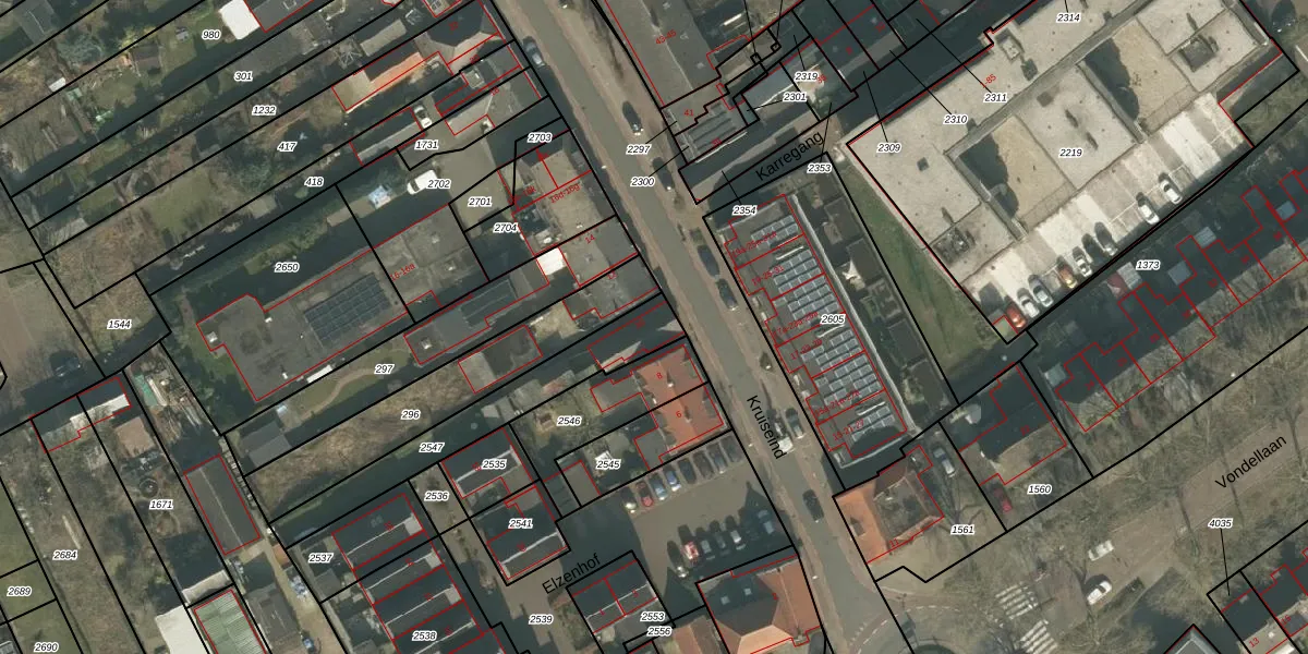 Gebruik de zoekbalk of klik op een perceel voor informatie over de adressen binnen dit perceel.
