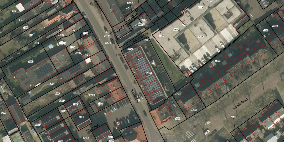 Het perceel waarop Kruiseind 23-a staat heeft een oppervlakte van 975 m². Dit is een groot perceel. De perceeloppervlakte wordt geregistreerd door het Kadaster. Gedetailleerde informatie over de maten van dit perceel kunt u vinden in het rapport Kadastrale kaart met maatvoering van Kruiseind 23-a.