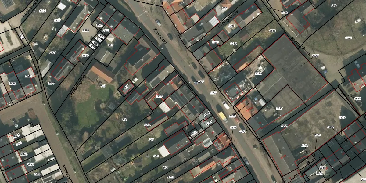 Het perceel waarop Kruiseind 36 staat heeft een oppervlakte van 581 m². Dit is een groot perceel. De perceeloppervlakte wordt geregistreerd door het Kadaster. Gedetailleerde informatie over de maten van dit perceel kunt u vinden in het rapport Kadastrale kaart met maatvoering van Kruiseind 36.