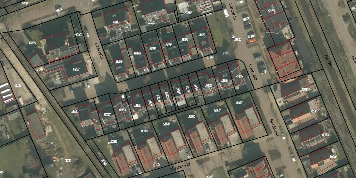 Het perceel waarop Laarveld 24 staat heeft een oppervlakte van 95 m². Dit is een klein perceel. De perceeloppervlakte wordt geregistreerd door het Kadaster. Gedetailleerde informatie over de maten van dit perceel kunt u vinden in het rapport Kadastrale kaart met maatvoering van Laarveld 24.