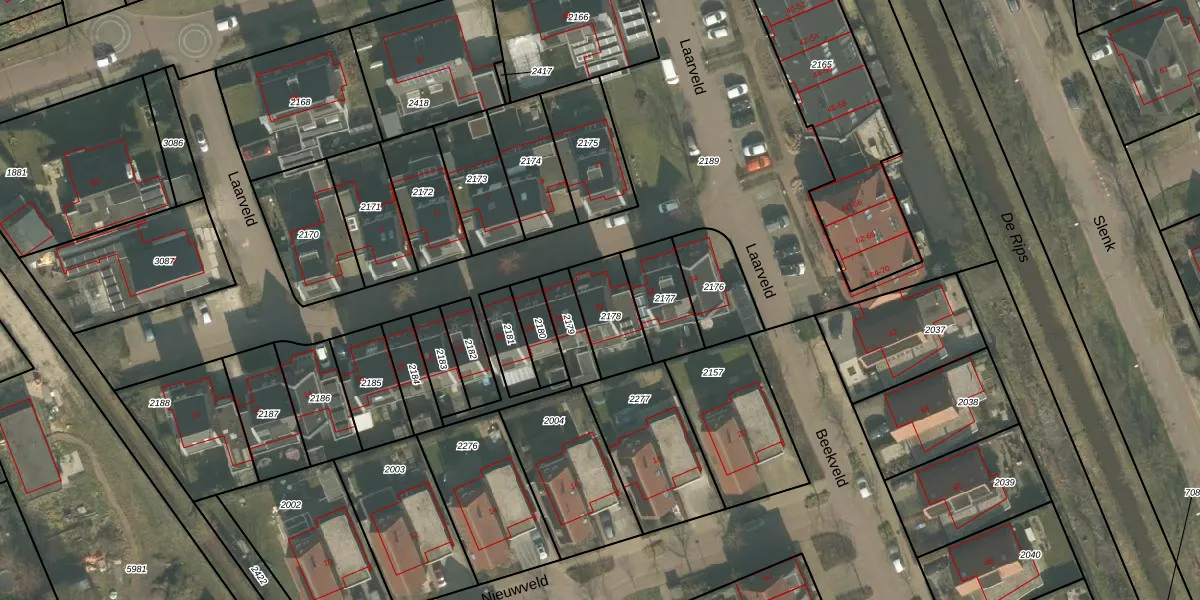 Het perceel waarop Laarveld 30 staat heeft een oppervlakte van 174 m². Dit is een middelgroot perceel. De perceeloppervlakte wordt geregistreerd door het Kadaster. Gedetailleerde informatie over de maten van dit perceel kunt u vinden in het rapport Kadastrale kaart met maatvoering van Laarveld 30.