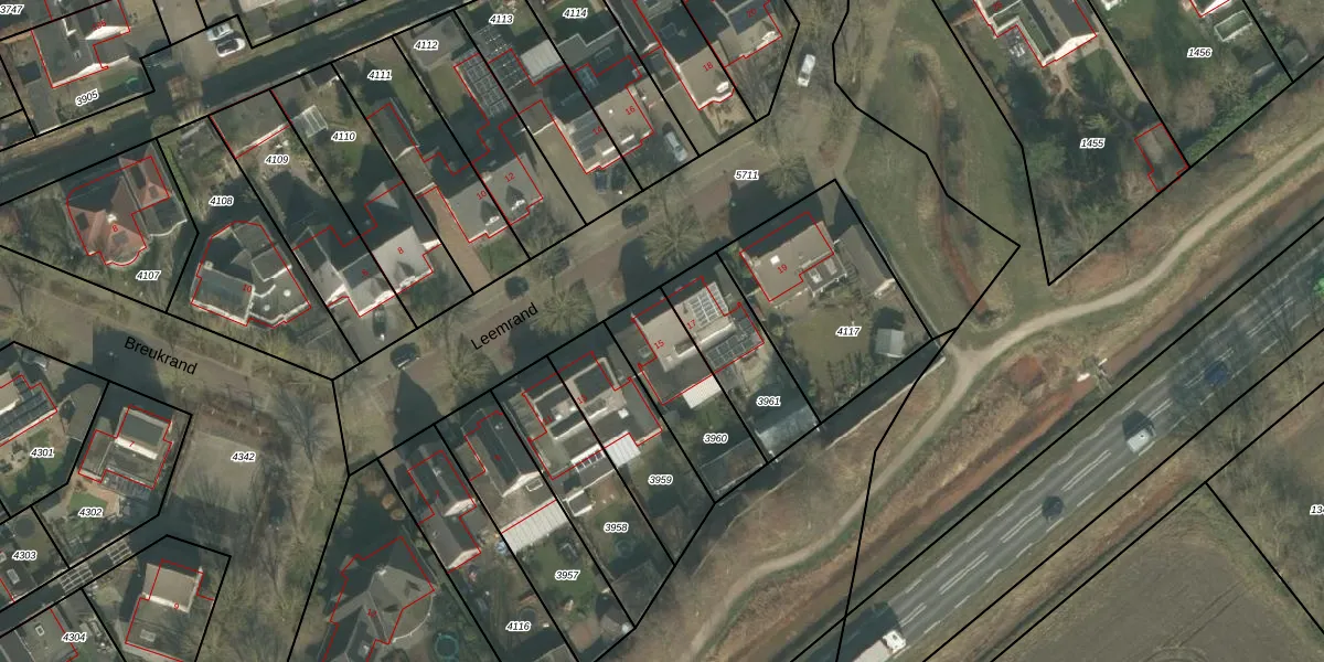 Het perceel waarop Leemrand 15 staat heeft een oppervlakte van 317 m². Dit is een groot perceel. De perceeloppervlakte wordt geregistreerd door het Kadaster. Gedetailleerde informatie over de maten van dit perceel kunt u vinden in het rapport Kadastrale kaart met maatvoering van Leemrand 15.