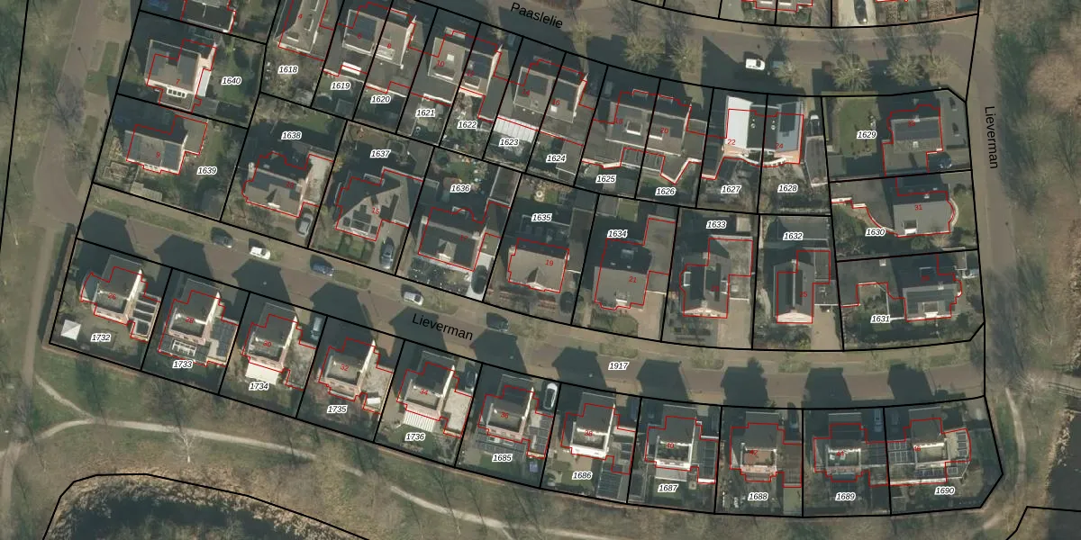 Het perceel waarop Lieverman 19 staat heeft een oppervlakte van 398 m². Dit is een groot perceel. De perceeloppervlakte wordt geregistreerd door het Kadaster. Gedetailleerde informatie over de maten van dit perceel kunt u vinden in het rapport Kadastrale kaart met maatvoering van Lieverman 19.
