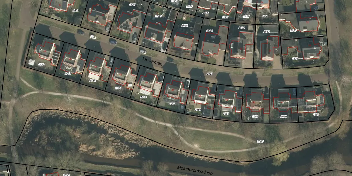 Het perceel waarop Lieverman 36 staat heeft een oppervlakte van 312 m². Dit is een groot perceel. De perceeloppervlakte wordt geregistreerd door het Kadaster. Gedetailleerde informatie over de maten van dit perceel kunt u vinden in het rapport Kadastrale kaart met maatvoering van Lieverman 36.