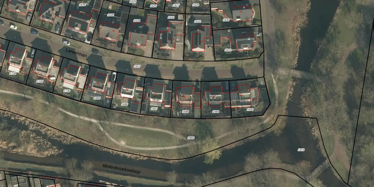 Gebruik de zoekbalk of klik op een perceel voor informatie over de adressen binnen dit perceel.