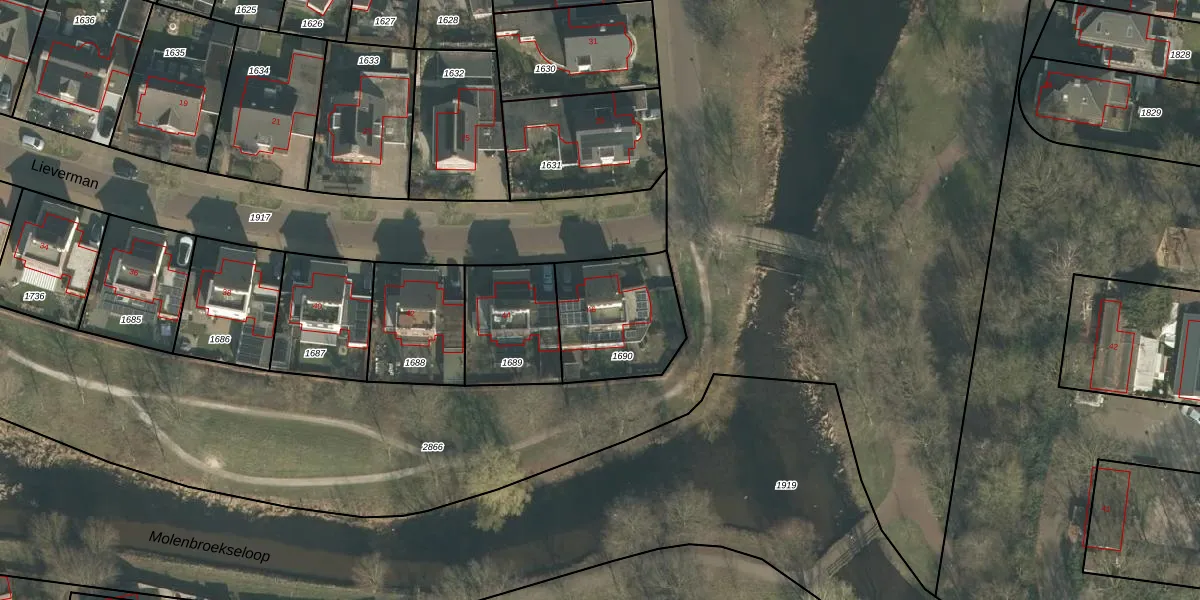 Het perceel waarop Lieverman 46 staat heeft een oppervlakte van 395 m². Dit is een groot perceel. De perceeloppervlakte wordt geregistreerd door het Kadaster. Gedetailleerde informatie over de maten van dit perceel kunt u vinden in het rapport Kadastrale kaart met maatvoering van Lieverman 46.