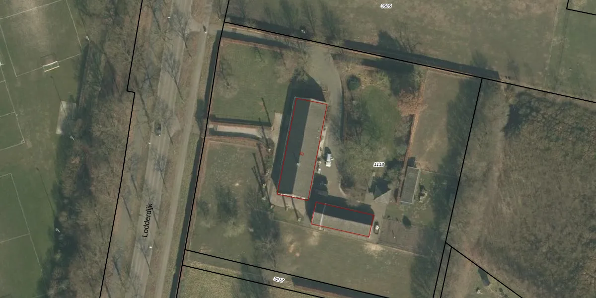 Het perceel waarop Lodderdijk 33 staat heeft een oppervlakte van 6785 m². Dit is een zeer groot perceel. De perceeloppervlakte wordt geregistreerd door het Kadaster. Gedetailleerde informatie over de maten van dit perceel kunt u vinden in het rapport Kadastrale kaart met maatvoering van Lodderdijk 33.