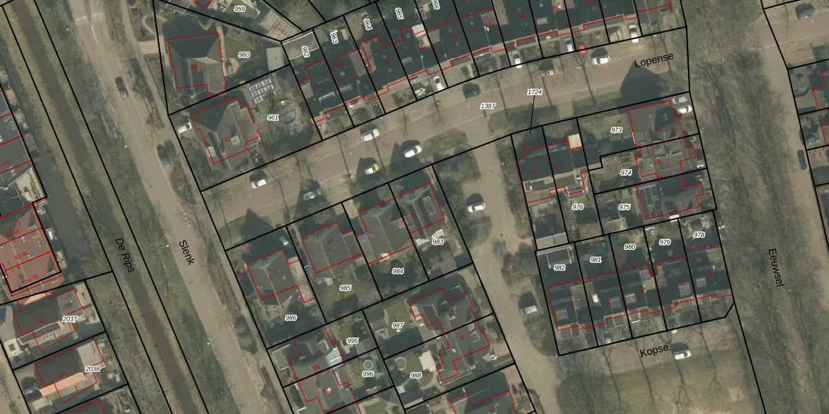 Het perceel waarop Lopense 9 staat heeft een oppervlakte van 294 m². Dit is een middelgroot perceel. De perceeloppervlakte wordt geregistreerd door het Kadaster. Gedetailleerde informatie over de maten van dit perceel kunt u vinden in het rapport Kadastrale kaart met maatvoering van Lopense 9.