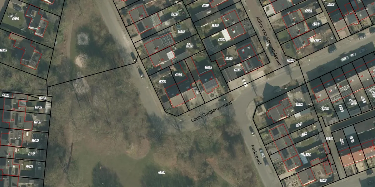 Louis Couperusstraat 38 is gelegen op kadastraal perceel GMT00M1821. Deze kadastrale aanduiding is uniek en wordt gebruikt door het Kadaster om eigendomsrechten en andere zakelijke rechten vast te leggen. Het perceel maakt onderdeel uit van de kadastrale gemeente Gemert.