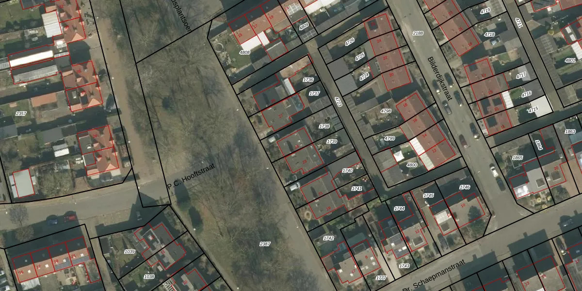 Gebruik de zoekbalk of klik op een perceel voor informatie over de adressen binnen dit perceel.