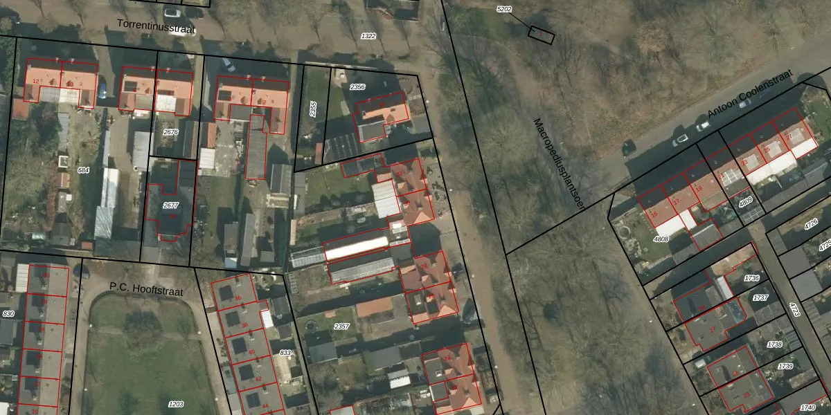 Het perceel waarop Macropediusplantsoen 30 staat heeft een oppervlakte van 4138 m². Dit is een zeer groot perceel. De perceeloppervlakte wordt geregistreerd door het Kadaster. Gedetailleerde informatie over de maten van dit perceel kunt u vinden in het rapport Kadastrale kaart met maatvoering van Macropediusplantsoen 30.