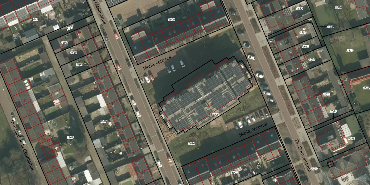Het perceel waarop Maria Aertshof 19 staat heeft een oppervlakte van 1250 m². Dit is een zeer groot perceel. De perceeloppervlakte wordt geregistreerd door het Kadaster. Gedetailleerde informatie over de maten van dit perceel kunt u vinden in het rapport Kadastrale kaart met maatvoering van Maria Aertshof 19.