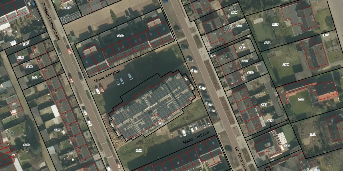 Het perceel waarop Maria Aertshof 29 staat heeft een oppervlakte van 1250 m². Dit is een zeer groot perceel. De perceeloppervlakte wordt geregistreerd door het Kadaster. Gedetailleerde informatie over de maten van dit perceel kunt u vinden in het rapport Kadastrale kaart met maatvoering van Maria Aertshof 29.