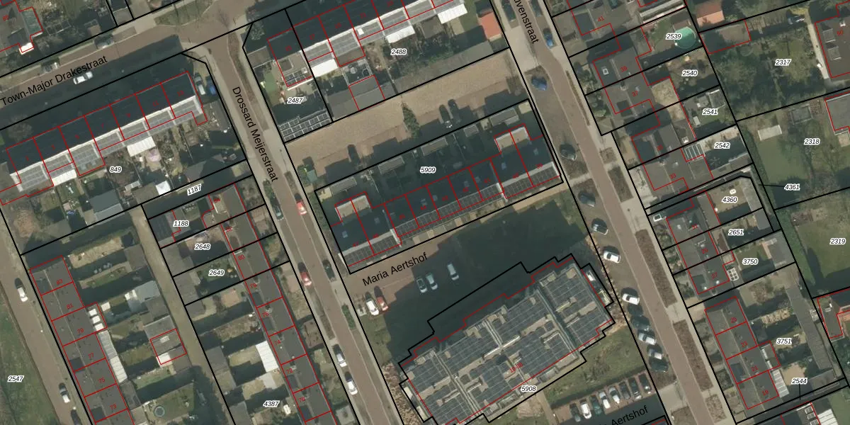 Het perceel waarop Maria Aertshof 44 staat heeft een oppervlakte van 1165 m². Dit is een zeer groot perceel. De perceeloppervlakte wordt geregistreerd door het Kadaster. Gedetailleerde informatie over de maten van dit perceel kunt u vinden in het rapport Kadastrale kaart met maatvoering van Maria Aertshof 44.