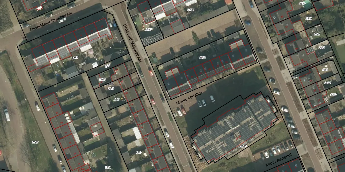 Het perceel waarop Maria Aertshof 47 staat heeft een oppervlakte van 1165 m². Dit is een zeer groot perceel. De perceeloppervlakte wordt geregistreerd door het Kadaster. Gedetailleerde informatie over de maten van dit perceel kunt u vinden in het rapport Kadastrale kaart met maatvoering van Maria Aertshof 47.