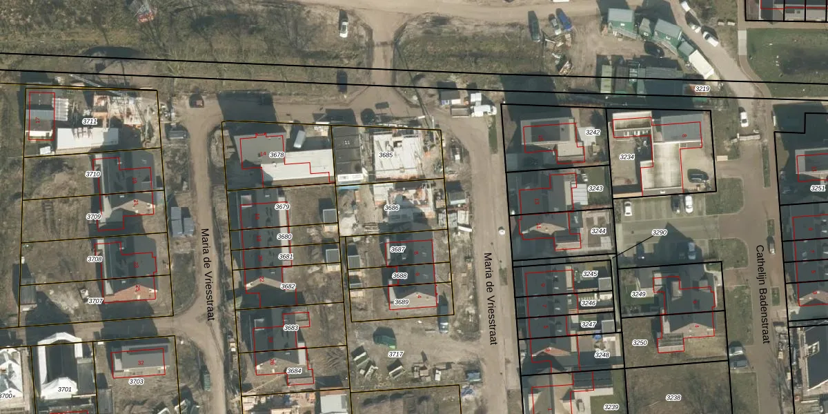 Maria de Vriesstraat 10 is gelegen op kadastraal perceel GMT00O3686. Deze kadastrale aanduiding is uniek en wordt gebruikt door het Kadaster om eigendomsrechten en andere zakelijke rechten vast te leggen. Het perceel maakt onderdeel uit van de kadastrale gemeente Gemert.