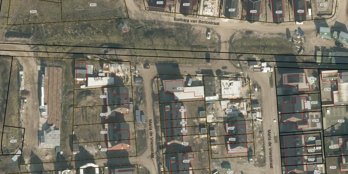 Gebruik de zoekbalk of klik op een perceel voor informatie over de adressen binnen dit perceel.