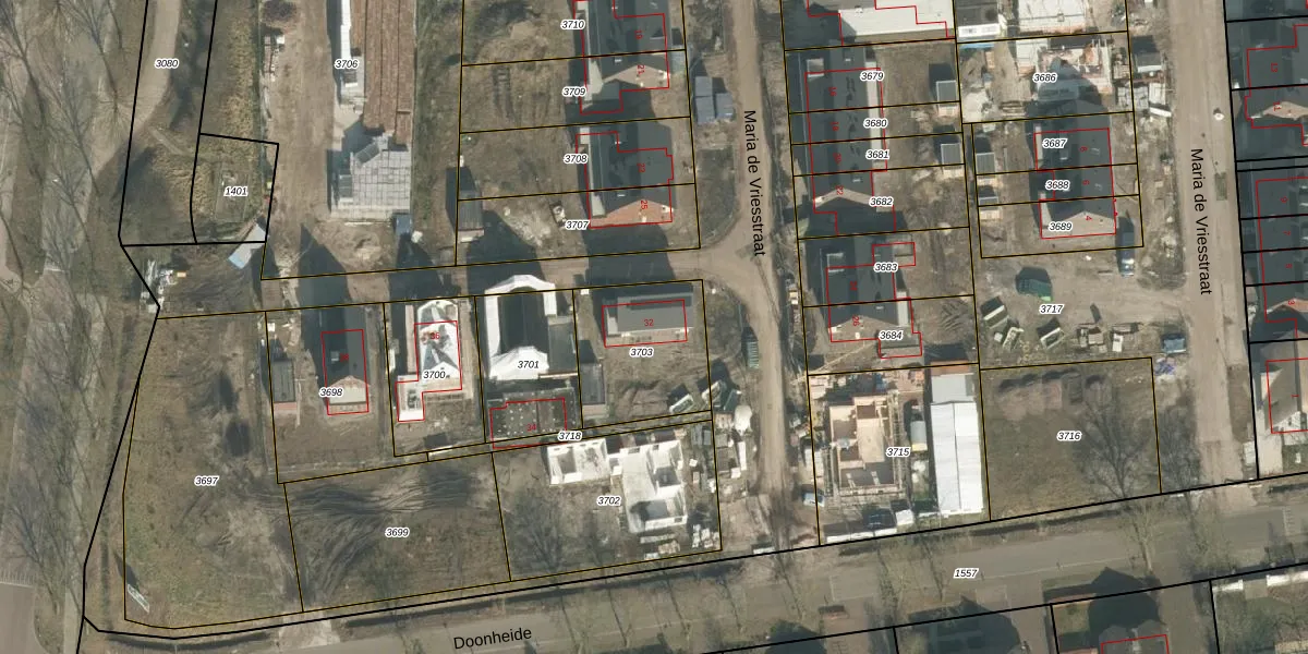 Maria de Vriesstraat 32 is gelegen op kadastraal perceel GMT00O3703. Deze kadastrale aanduiding is uniek en wordt gebruikt door het Kadaster om eigendomsrechten en andere zakelijke rechten vast te leggen. Het perceel maakt onderdeel uit van de kadastrale gemeente Gemert.
