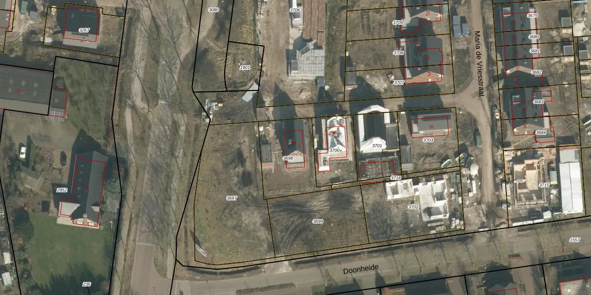 Maria de Vriesstraat 38 is gelegen op kadastraal perceel GMT00O3698. Deze kadastrale aanduiding is uniek en wordt gebruikt door het Kadaster om eigendomsrechten en andere zakelijke rechten vast te leggen. Het perceel maakt onderdeel uit van de kadastrale gemeente Gemert.