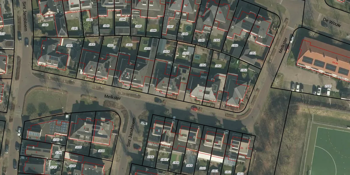 Gebruik de zoekbalk of klik op een perceel voor informatie over de adressen binnen dit perceel.