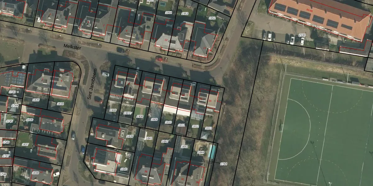 Gebruik de zoekbalk of klik op een perceel voor informatie over de adressen binnen dit perceel.
