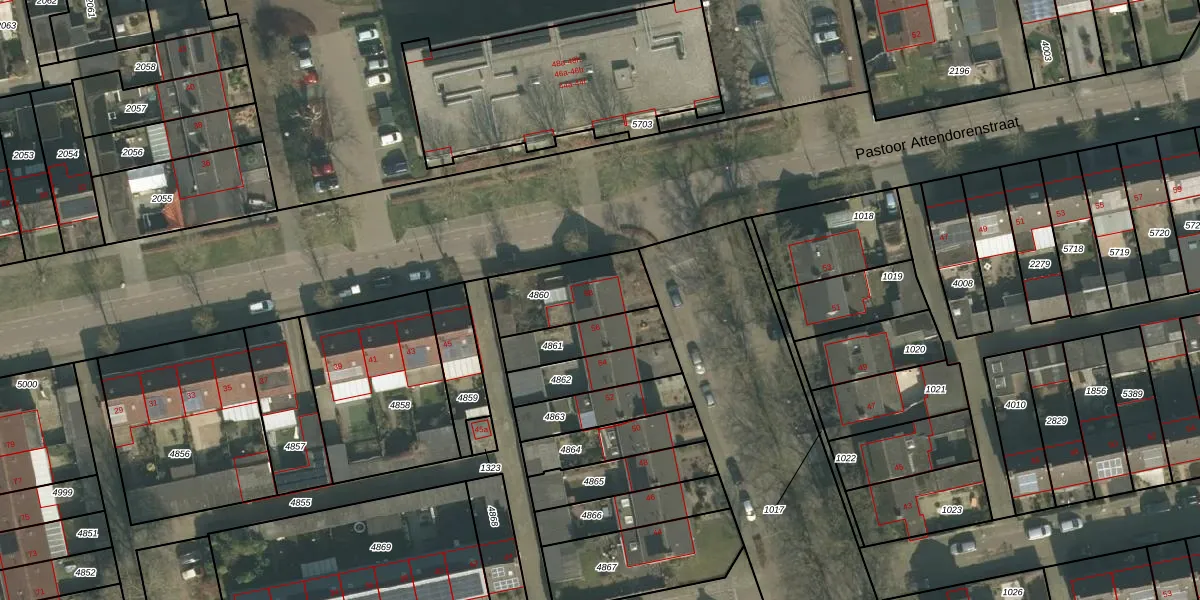 Gebruik de zoekbalk of klik op een perceel voor informatie over de adressen binnen dit perceel.