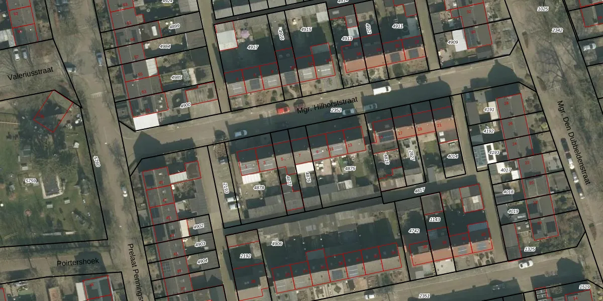 Gebruik de zoekbalk of klik op een perceel voor informatie over de adressen binnen dit perceel.