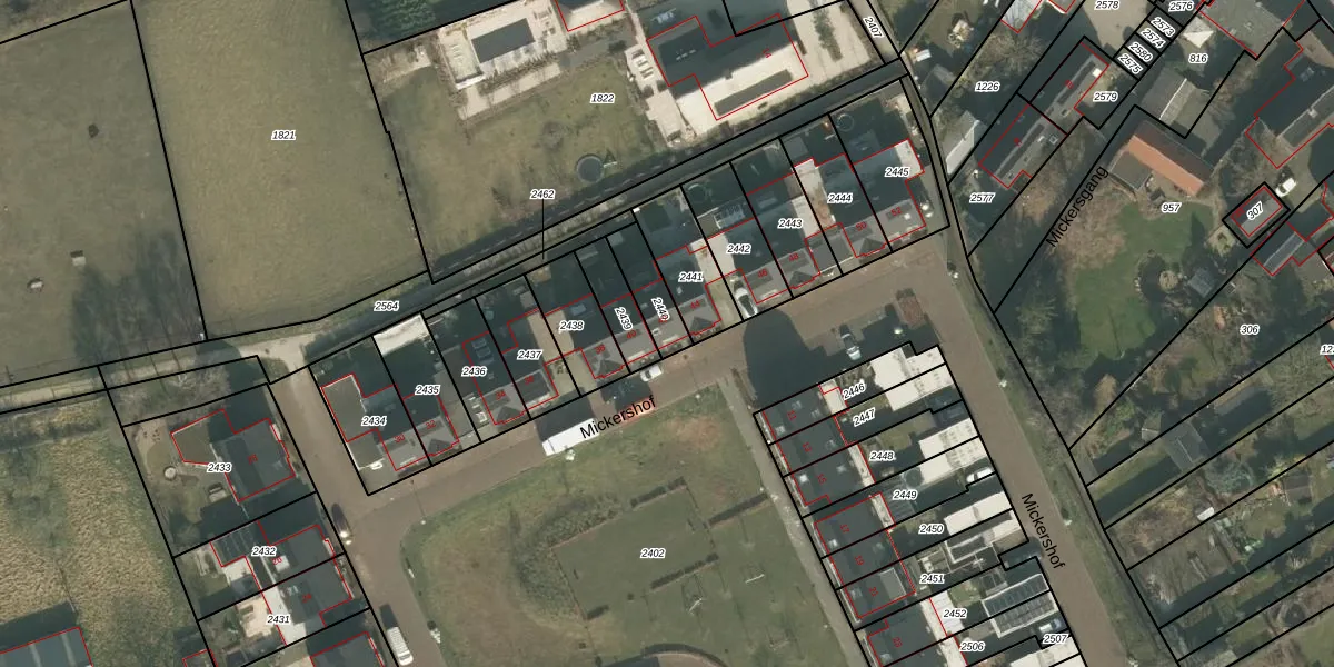 Mickershof 42 is gelegen op kadastraal perceel GMT00N2440. Deze kadastrale aanduiding is uniek en wordt gebruikt door het Kadaster om eigendomsrechten en andere zakelijke rechten vast te leggen. Het perceel maakt onderdeel uit van de kadastrale gemeente Gemert.