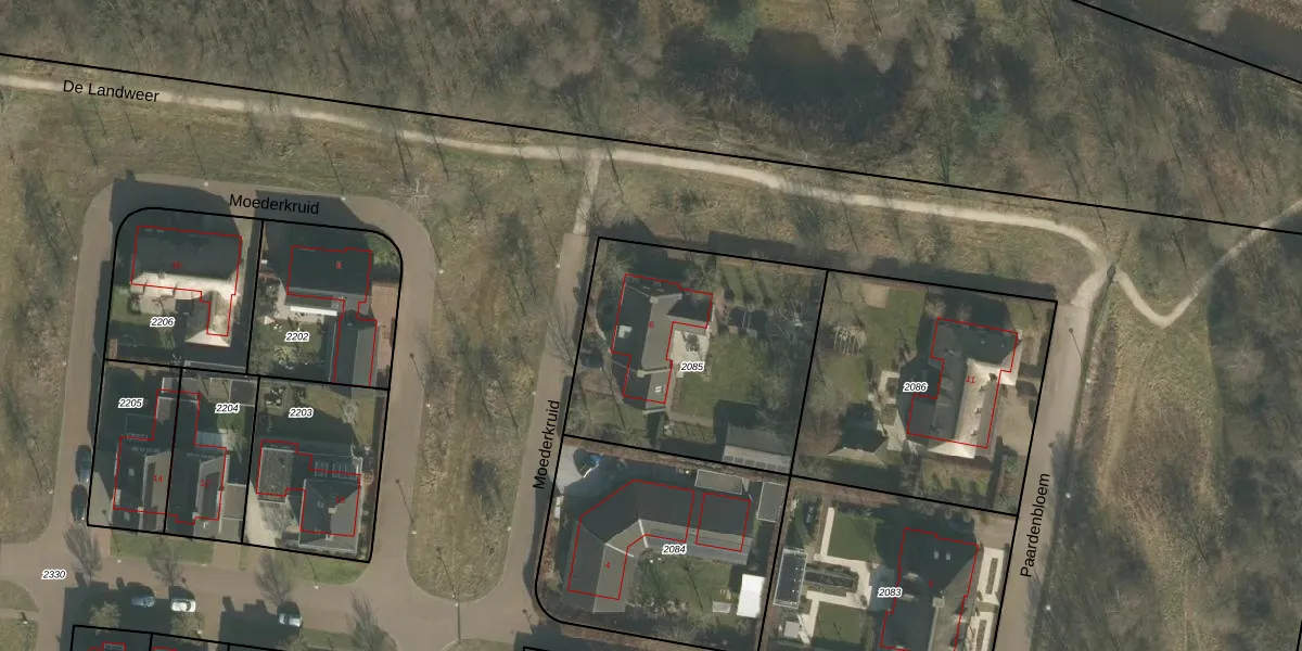 Het perceel waarop Moederkruid 6 staat heeft een oppervlakte van 1116 m². Dit is een zeer groot perceel. De perceeloppervlakte wordt geregistreerd door het Kadaster. Gedetailleerde informatie over de maten van dit perceel kunt u vinden in het rapport Kadastrale kaart met maatvoering van Moederkruid 6.