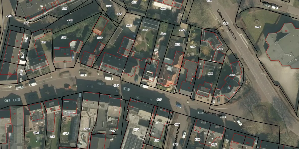 Het perceel waarop Molenstraat 36 staat heeft een oppervlakte van 408 m². Dit is een groot perceel. De perceeloppervlakte wordt geregistreerd door het Kadaster. Gedetailleerde informatie over de maten van dit perceel kunt u vinden in het rapport Kadastrale kaart met maatvoering van Molenstraat 36.