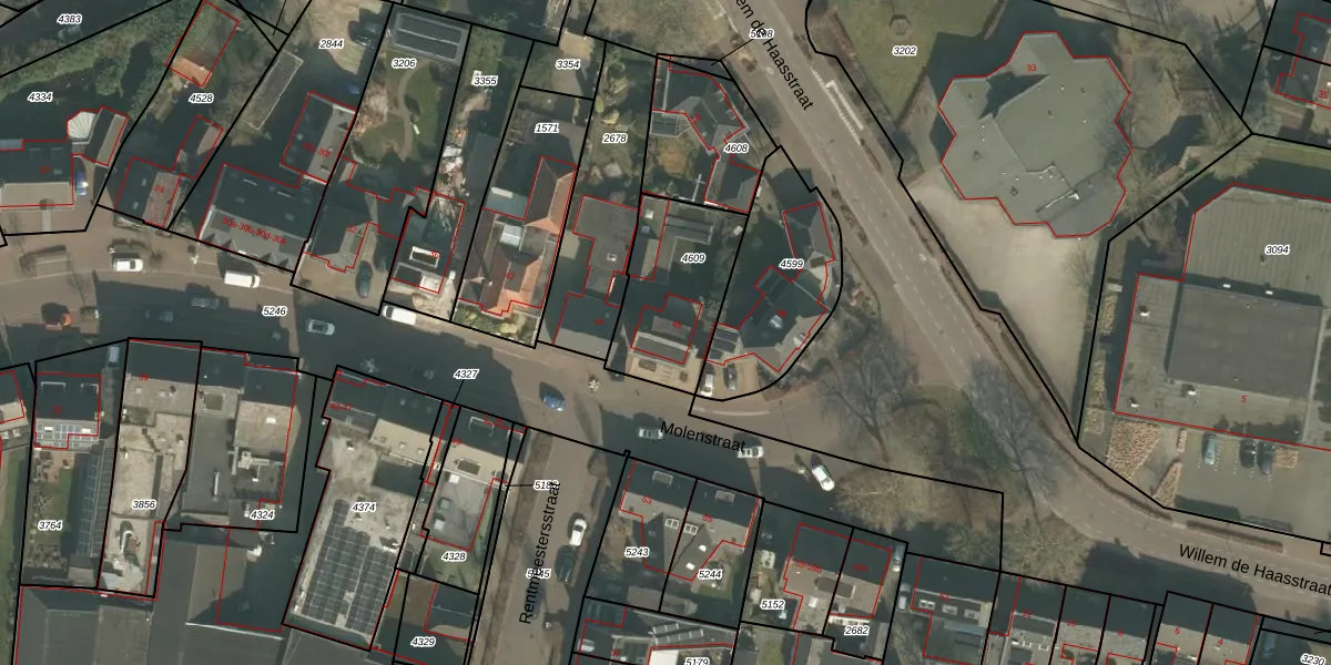 Gebruik de zoekbalk of klik op een perceel voor informatie over de adressen binnen dit perceel.