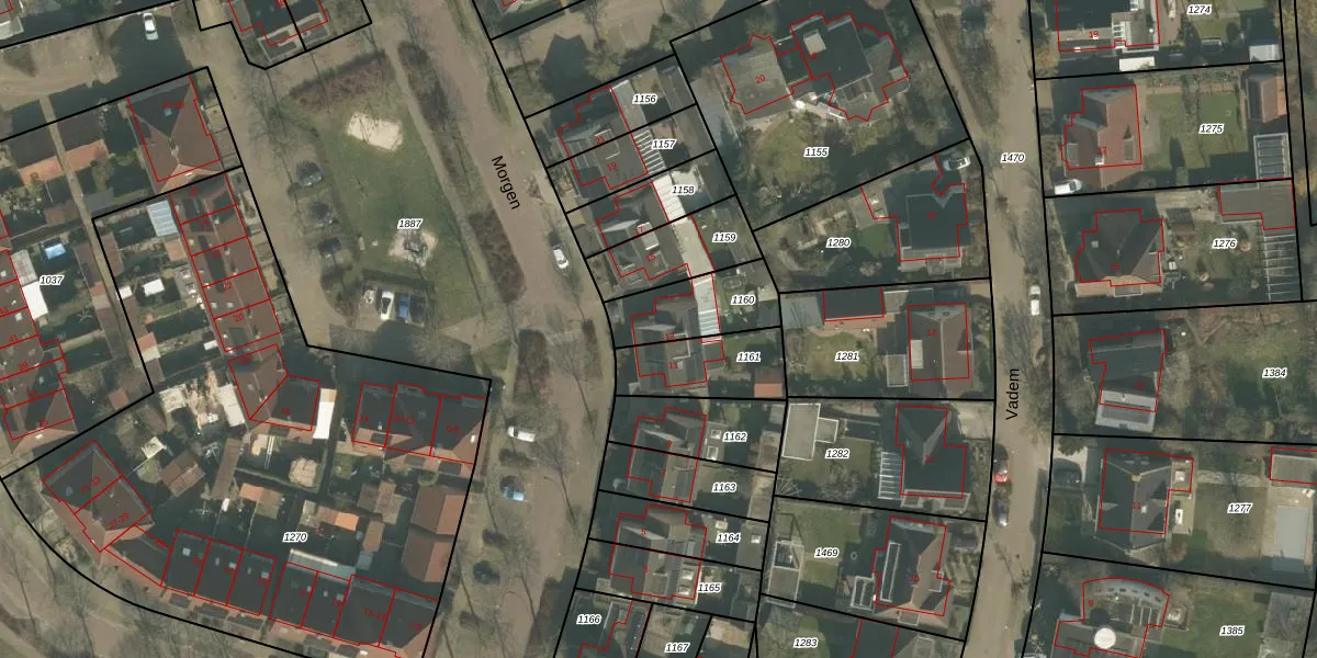 Gebruik de zoekbalk of klik op een perceel voor informatie over de adressen binnen dit perceel.