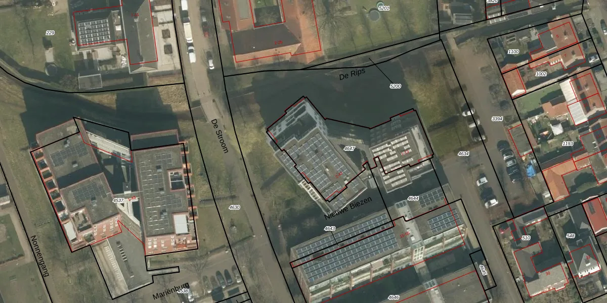 Nieuwe Biezen 49 is gelegen op kadastraal perceel GMT00M4647. Deze kadastrale aanduiding is uniek en wordt gebruikt door het Kadaster om eigendomsrechten en andere zakelijke rechten vast te leggen. Het perceel maakt onderdeel uit van de kadastrale gemeente Gemert.