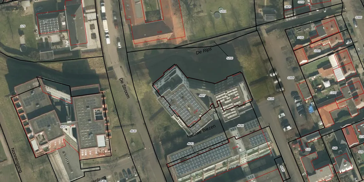 Het perceel waarop Nieuwe Biezen 53 staat heeft een oppervlakte van 952 m². Dit is een groot perceel. De perceeloppervlakte wordt geregistreerd door het Kadaster. Gedetailleerde informatie over de maten van dit perceel kunt u vinden in het rapport Kadastrale kaart met maatvoering van Nieuwe Biezen 53.