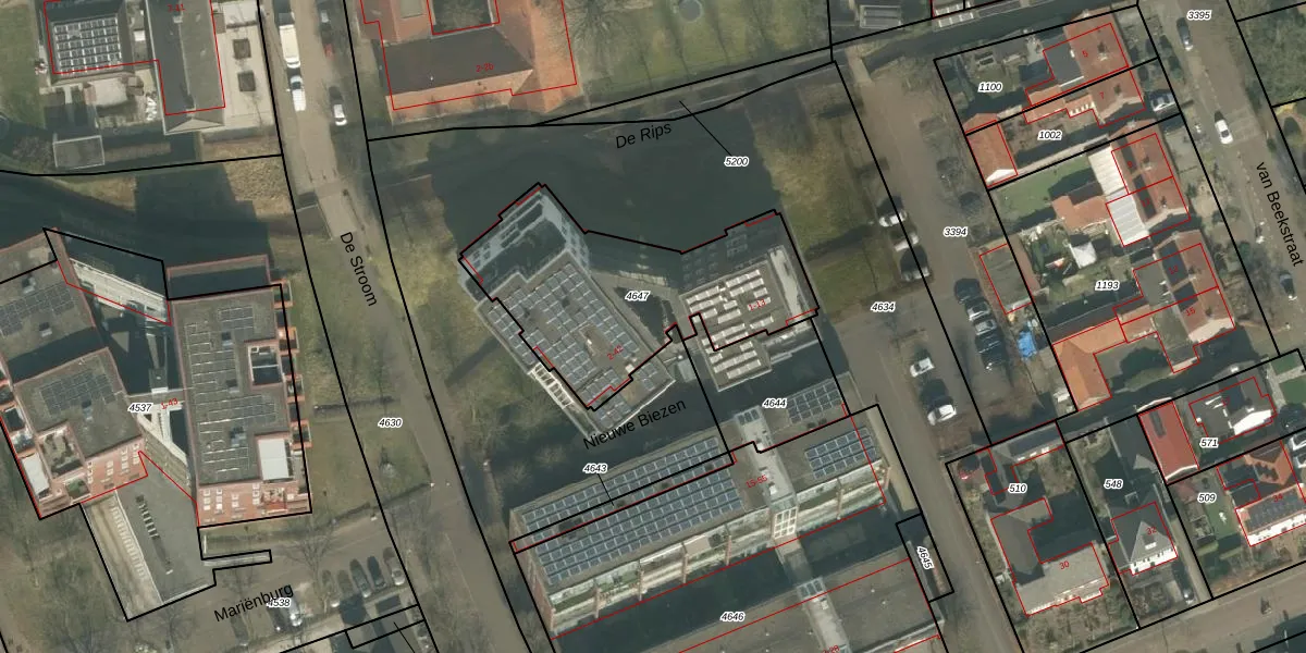 Het perceel waarop Nieuwe Biezen 7 staat heeft een oppervlakte van 952 m². Dit is een groot perceel. De perceeloppervlakte wordt geregistreerd door het Kadaster. Gedetailleerde informatie over de maten van dit perceel kunt u vinden in het rapport Kadastrale kaart met maatvoering van Nieuwe Biezen 7.