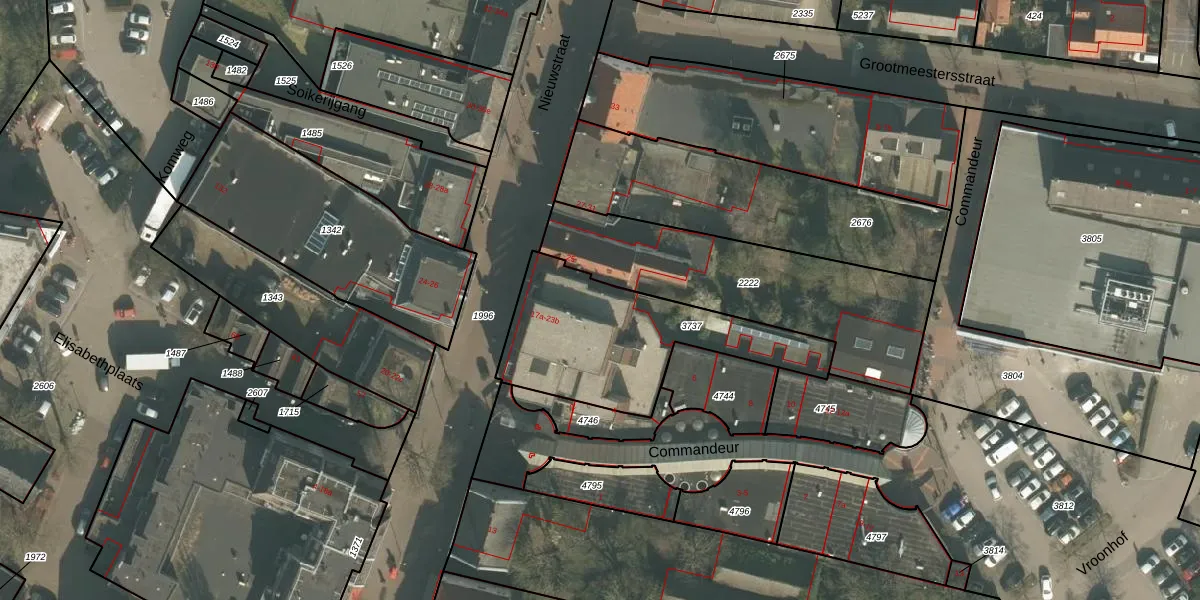 Het perceel waarop Nieuwstraat 19-d staat heeft een oppervlakte van 739 m². Dit is een groot perceel. De perceeloppervlakte wordt geregistreerd door het Kadaster. Gedetailleerde informatie over de maten van dit perceel kunt u vinden in het rapport Kadastrale kaart met maatvoering van Nieuwstraat 19-d.