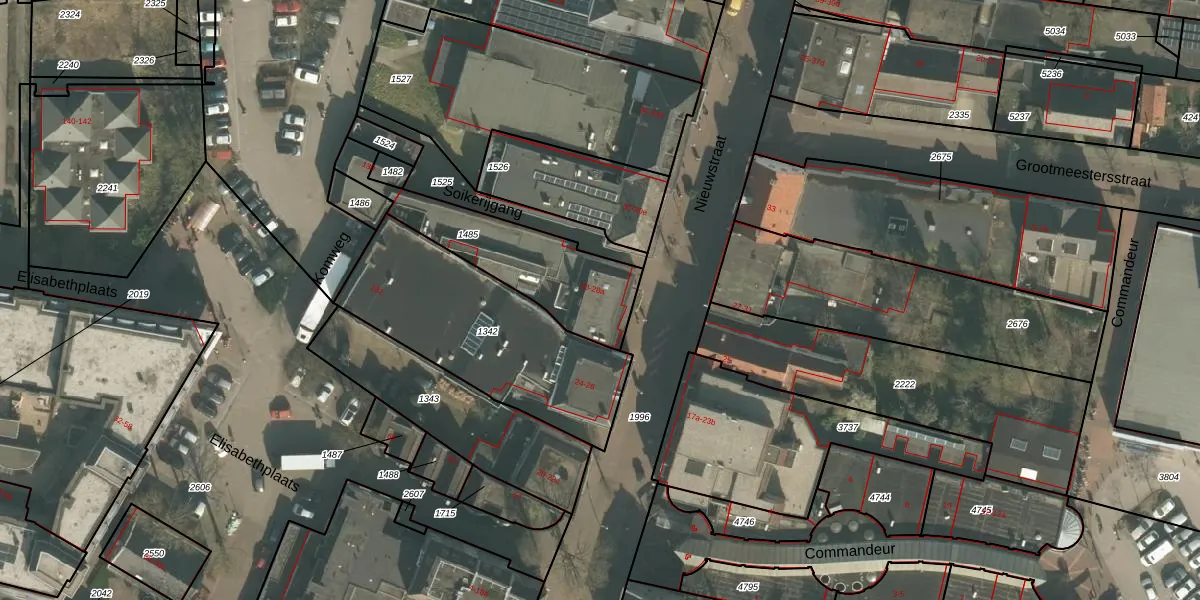 Het perceel waarop Nieuwstraat 28 staat heeft een oppervlakte van 495 m². Dit is een groot perceel. De perceeloppervlakte wordt geregistreerd door het Kadaster. Gedetailleerde informatie over de maten van dit perceel kunt u vinden in het rapport Kadastrale kaart met maatvoering van Nieuwstraat 28.