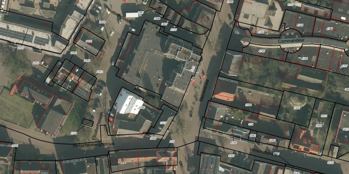 Het perceel waarop Nieuwstraat 4 staat heeft een oppervlakte van 1472 m². Dit is een zeer groot perceel. De perceeloppervlakte wordt geregistreerd door het Kadaster. Gedetailleerde informatie over de maten van dit perceel kunt u vinden in het rapport Kadastrale kaart met maatvoering van Nieuwstraat 4.