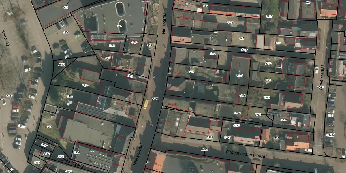 Het perceel waarop Nieuwstraat 43 staat heeft een oppervlakte van 522 m². Dit is een groot perceel. De perceeloppervlakte wordt geregistreerd door het Kadaster. Gedetailleerde informatie over de maten van dit perceel kunt u vinden in het rapport Kadastrale kaart met maatvoering van Nieuwstraat 43.