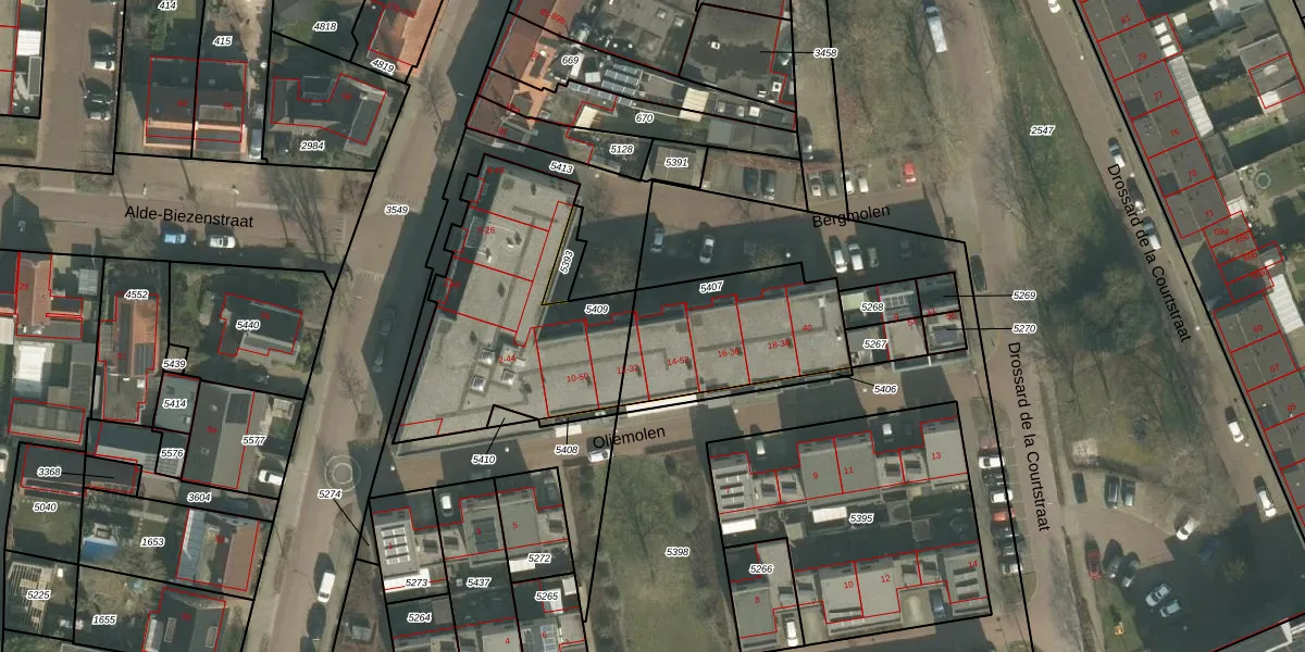Het perceel waarop Oliemolen 14 staat heeft een oppervlakte van 558 m². Dit is een groot perceel. De perceeloppervlakte wordt geregistreerd door het Kadaster. Gedetailleerde informatie over de maten van dit perceel kunt u vinden in het rapport Kadastrale kaart met maatvoering van Oliemolen 14.