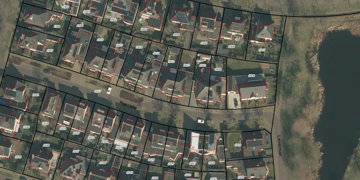 Paaslelie 15 is gelegen op kadastraal perceel GMT00O1611. Deze kadastrale aanduiding is uniek en wordt gebruikt door het Kadaster om eigendomsrechten en andere zakelijke rechten vast te leggen. Het perceel maakt onderdeel uit van de kadastrale gemeente Gemert.