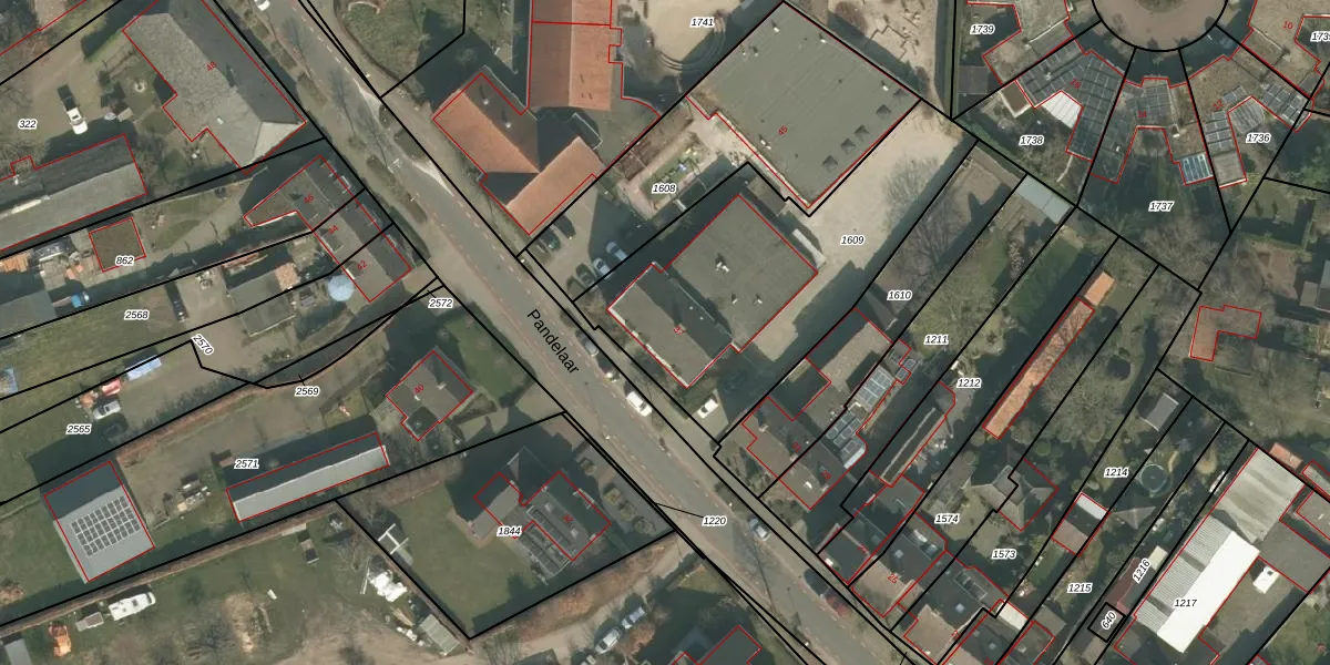 Het perceel waarop Pandelaar 37 staat heeft een oppervlakte van 1267 m². Dit is een zeer groot perceel. De perceeloppervlakte wordt geregistreerd door het Kadaster. Gedetailleerde informatie over de maten van dit perceel kunt u vinden in het rapport Kadastrale kaart met maatvoering van Pandelaar 37.
